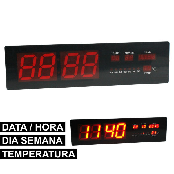 RELÓGIO DE PAREDE C/TERMÓMETRO E DATA A LEDS